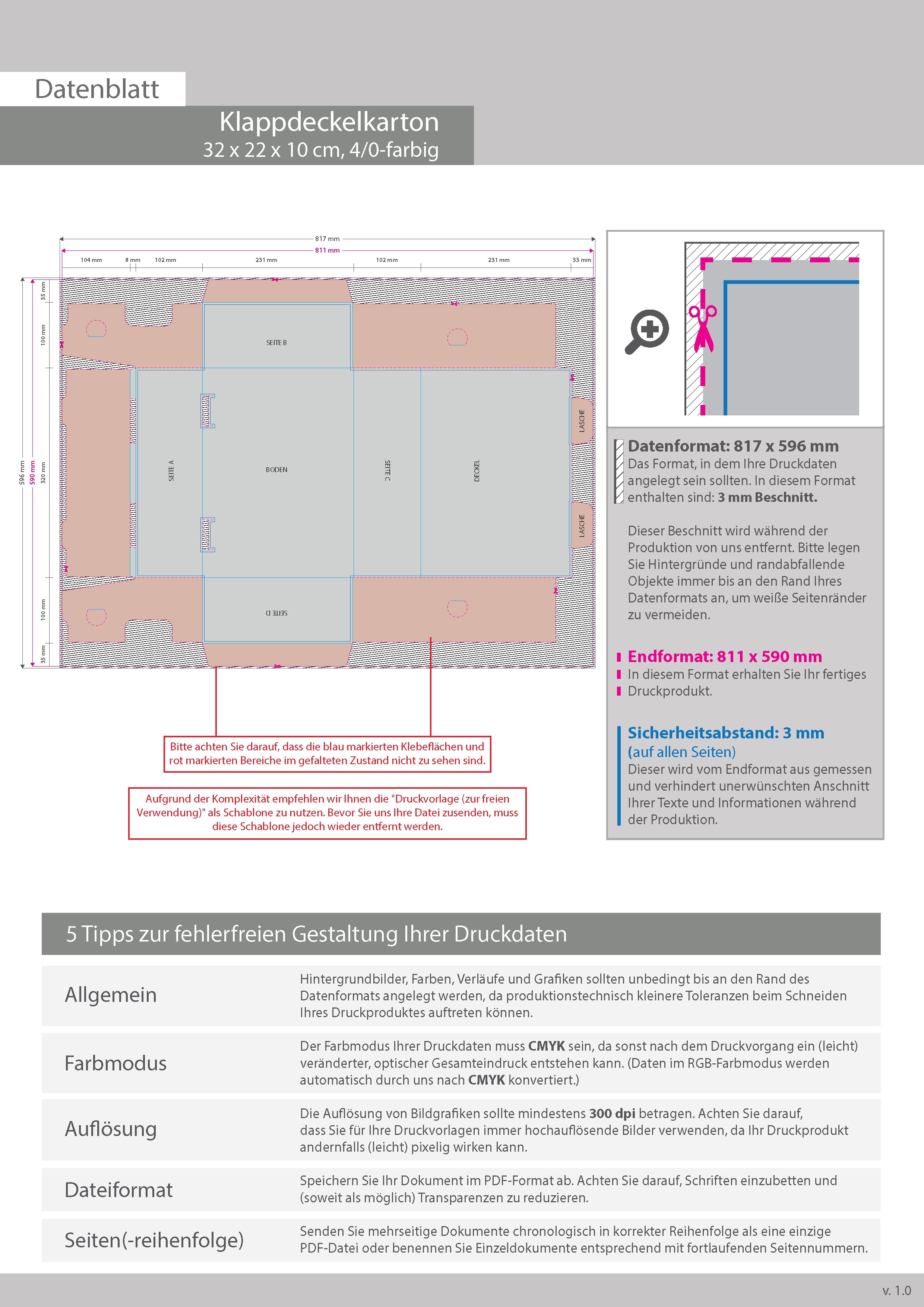 Klappdeckelkarton (32 x 22 x 10 cm), 4/0 farbig bedruckt